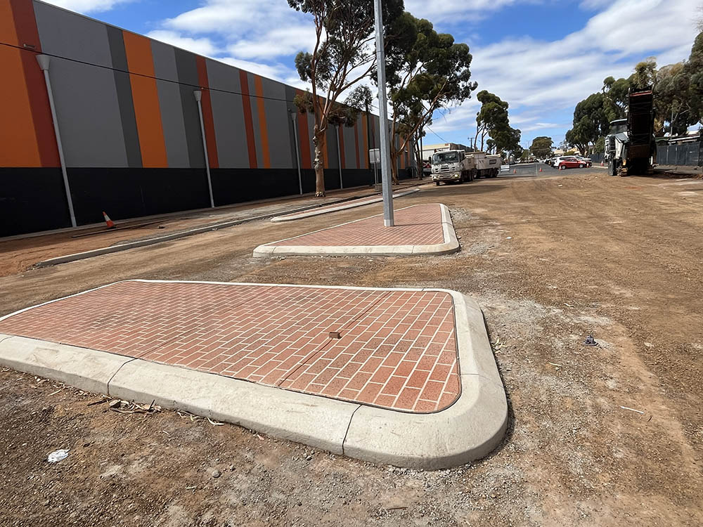 - Installation of new concrete kerbing, pram ramps and pedestrian islands